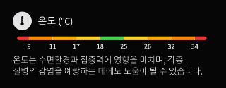 하나의 정보만 표시(온도, 습도 같이 나오고 화학물질, 초미세먼지가 같이 나왔으면 좋았을것 같습니다)