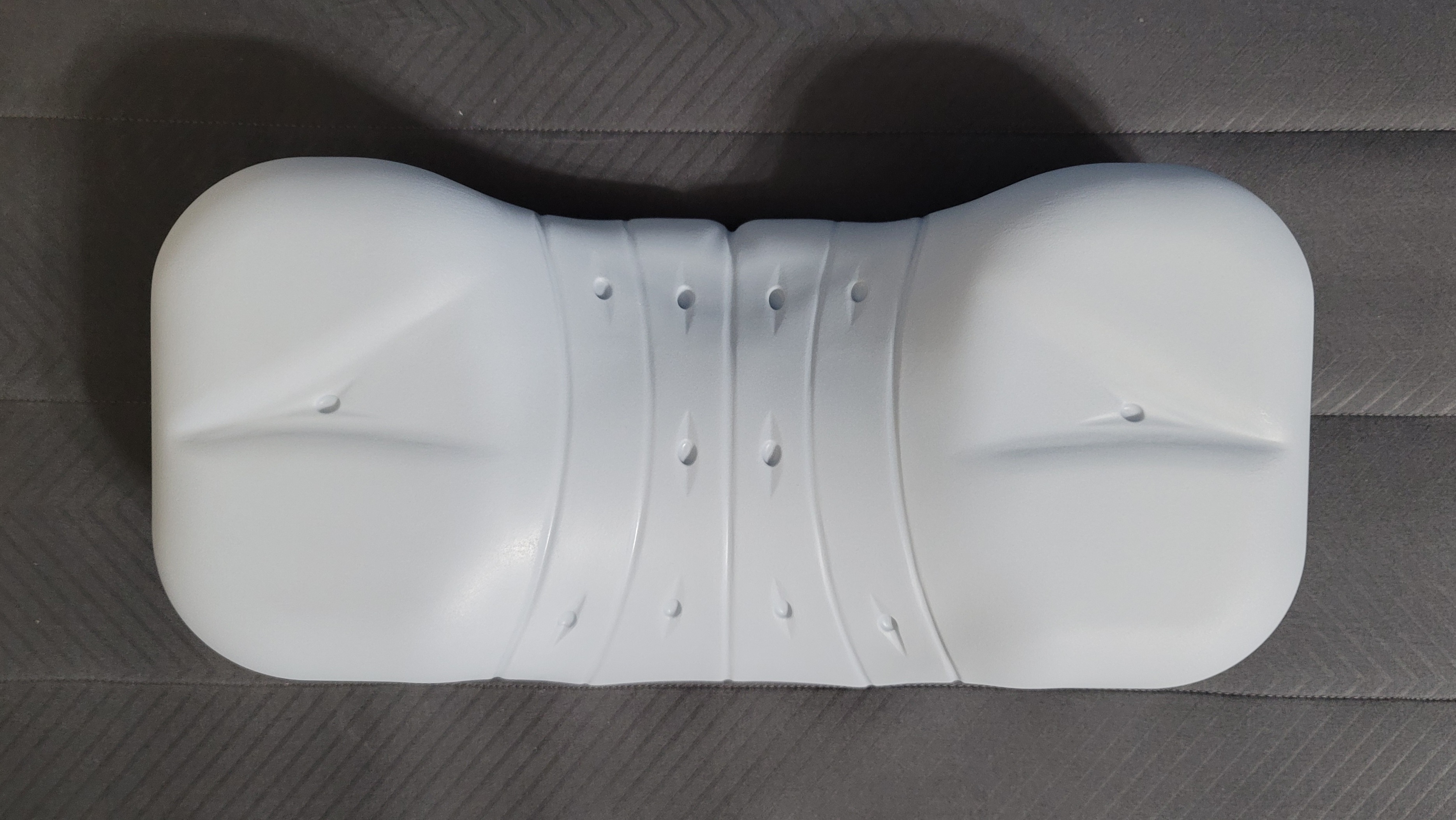 양 옆은 어깨가 닿는 부분으로 홈이 조금 있고 중앙은 목과 등 사이를 받쳐주는 부분 같습니다