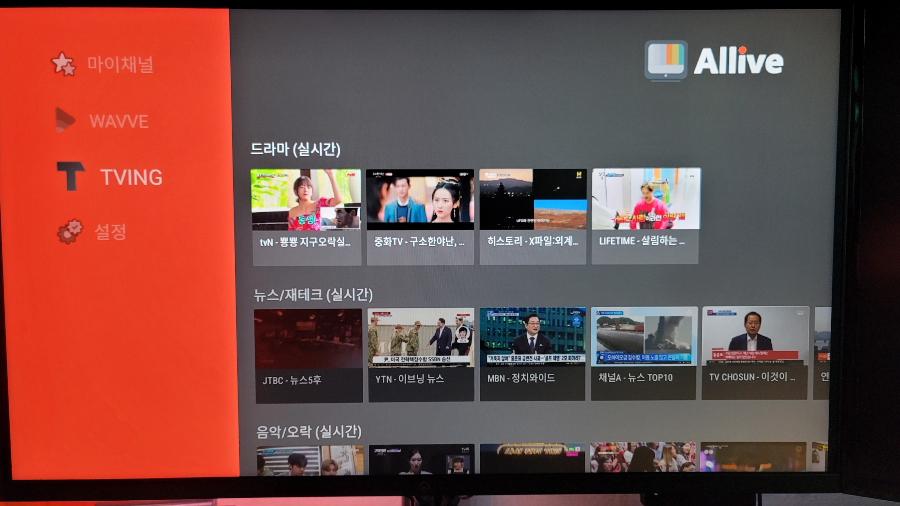 Allive TV는 딱 필요한 기능과 익숙한 UI 마이채널 등으로 원하는 채널 접근이 빠르고, 네이버 멤버십으로 티빙을 이용해도 로그인을 지원하여 실시간을 볼 수 있습니다