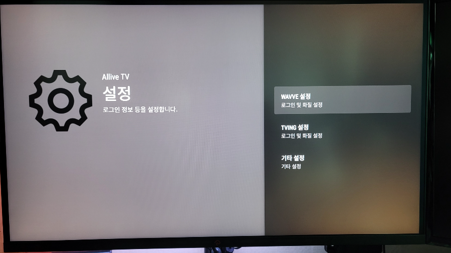 각각의 설정에서 로그인 및 화질 설정이 가능하고 기타에서는 리모컨 동작 설정이 가능합니다