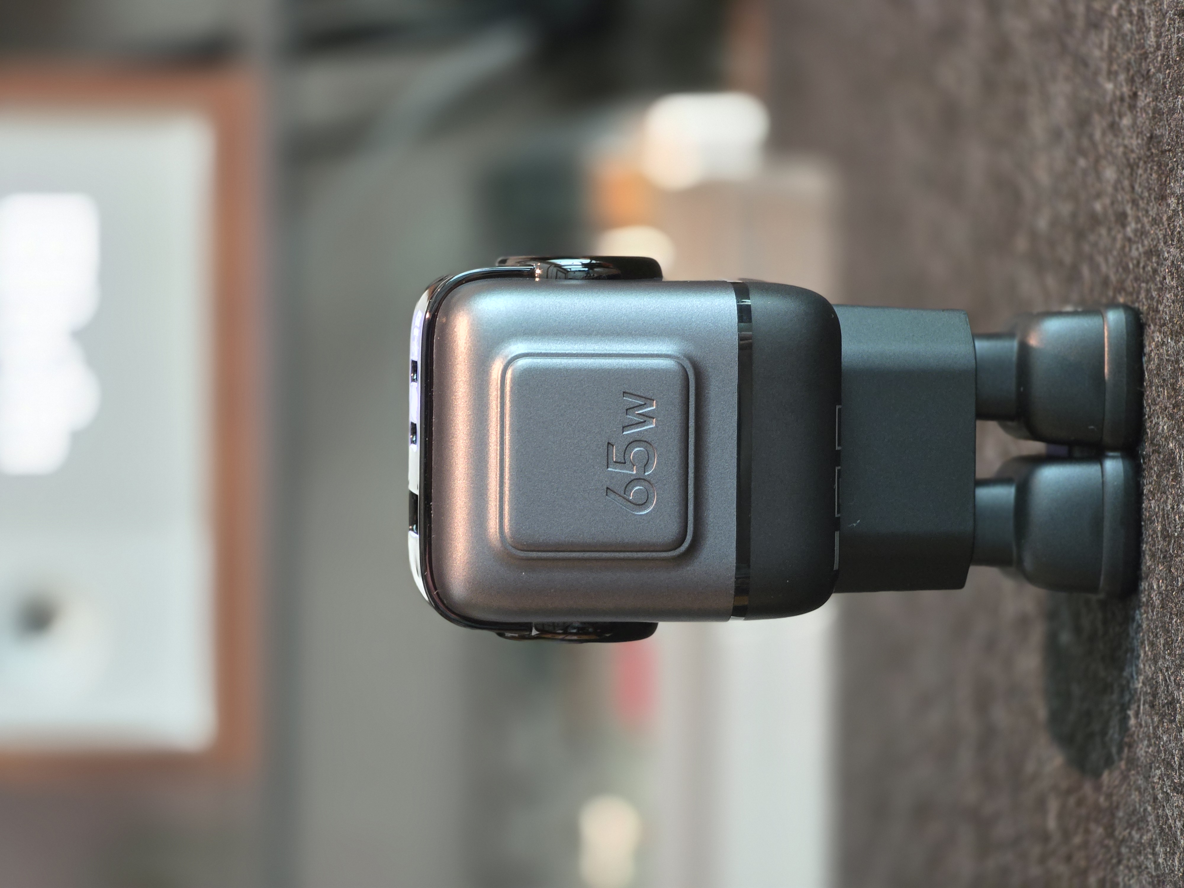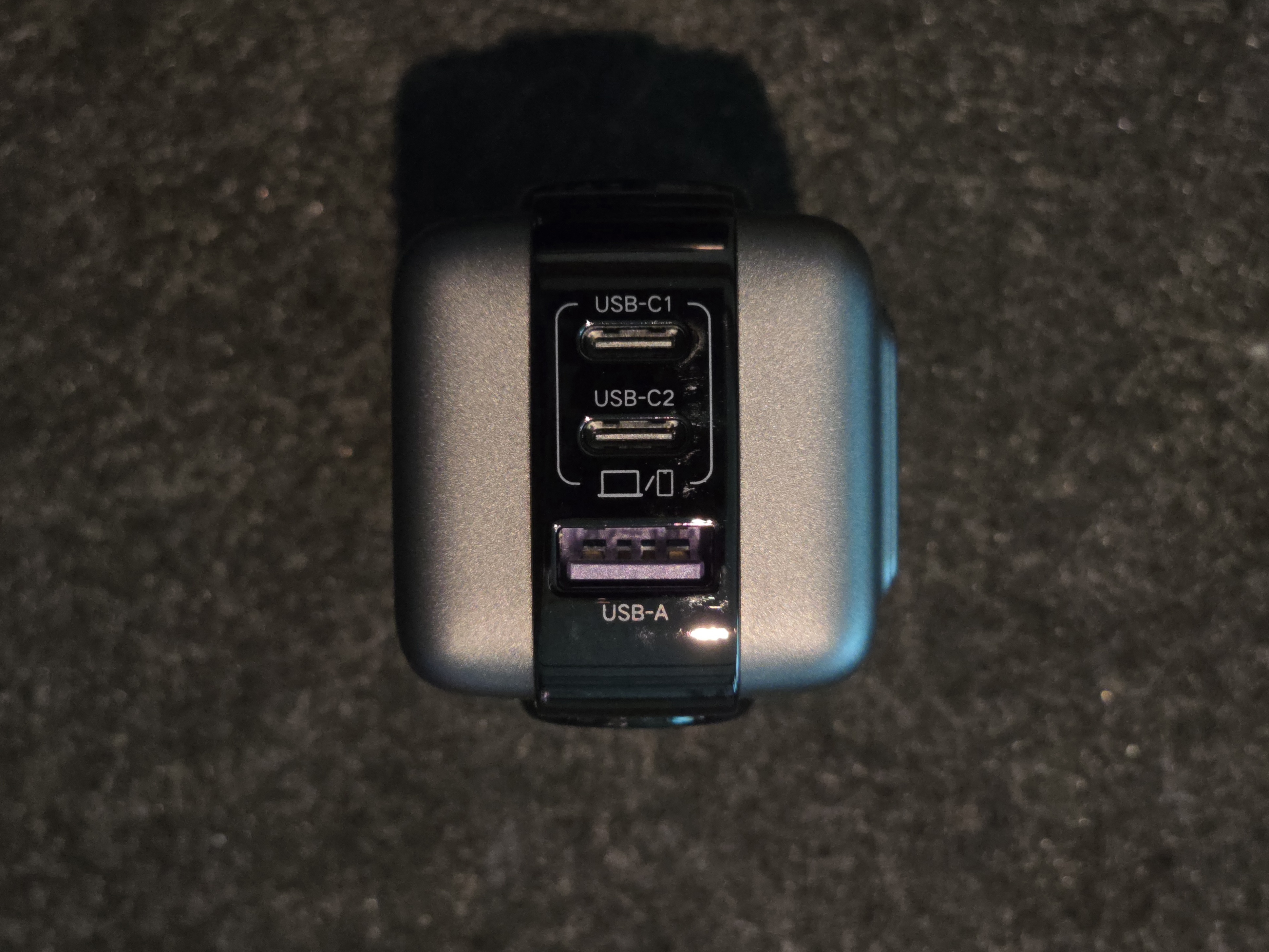 상단에는 USB-C 포트 2개와 USB-A 포트 1개가 배치되어 있습니다