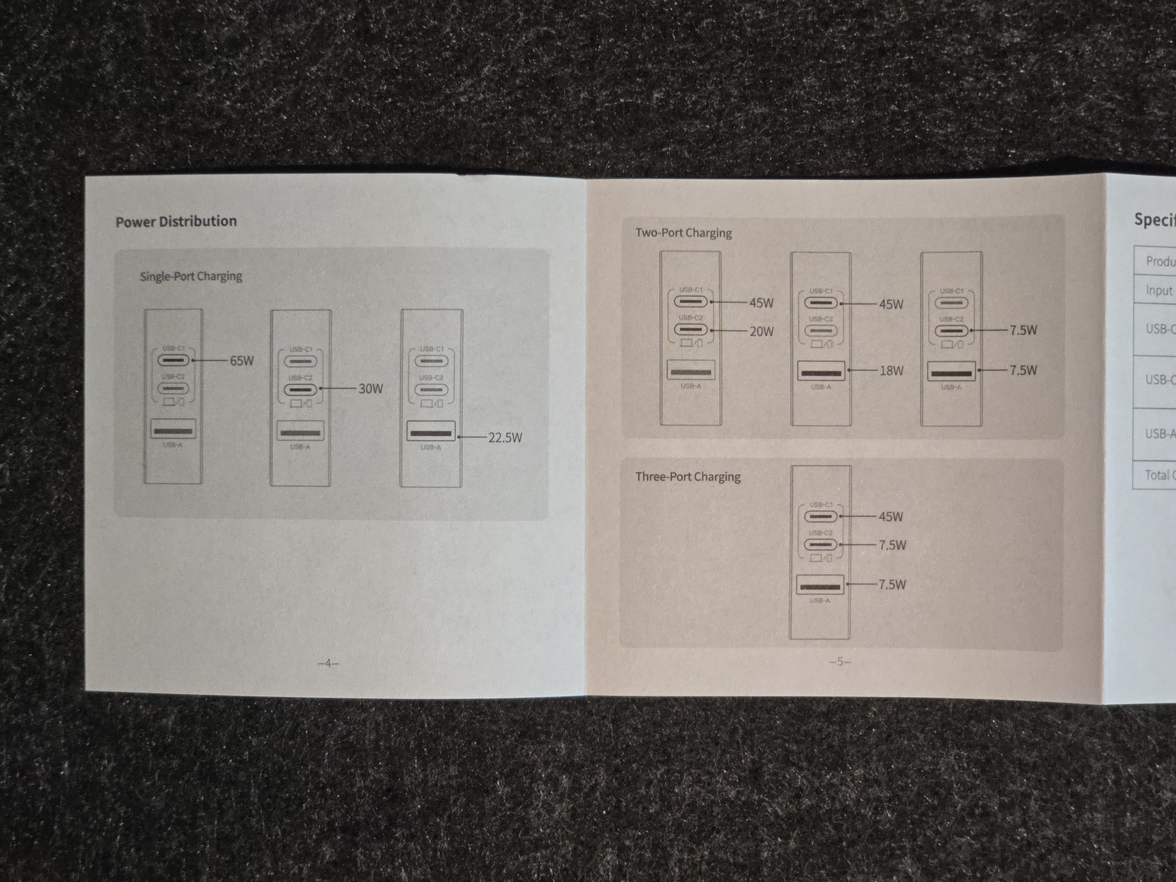 설명서에 각 포트별 출력과 동시에 사용할 때의 W 수가 표시되어 있어, 어떤 상황에서 어느 정도의 성능을 기대할 수 있는지 한눈에 알 수 있습니다
